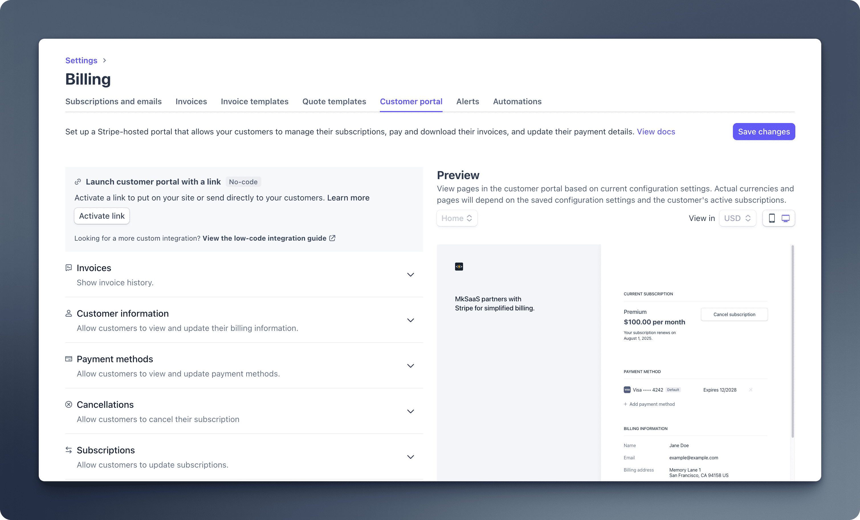 NEXT_PUBLIC_STRIPE_PRICE_LIFETIME=price_...- Set up the Stripe Customer Portal:
