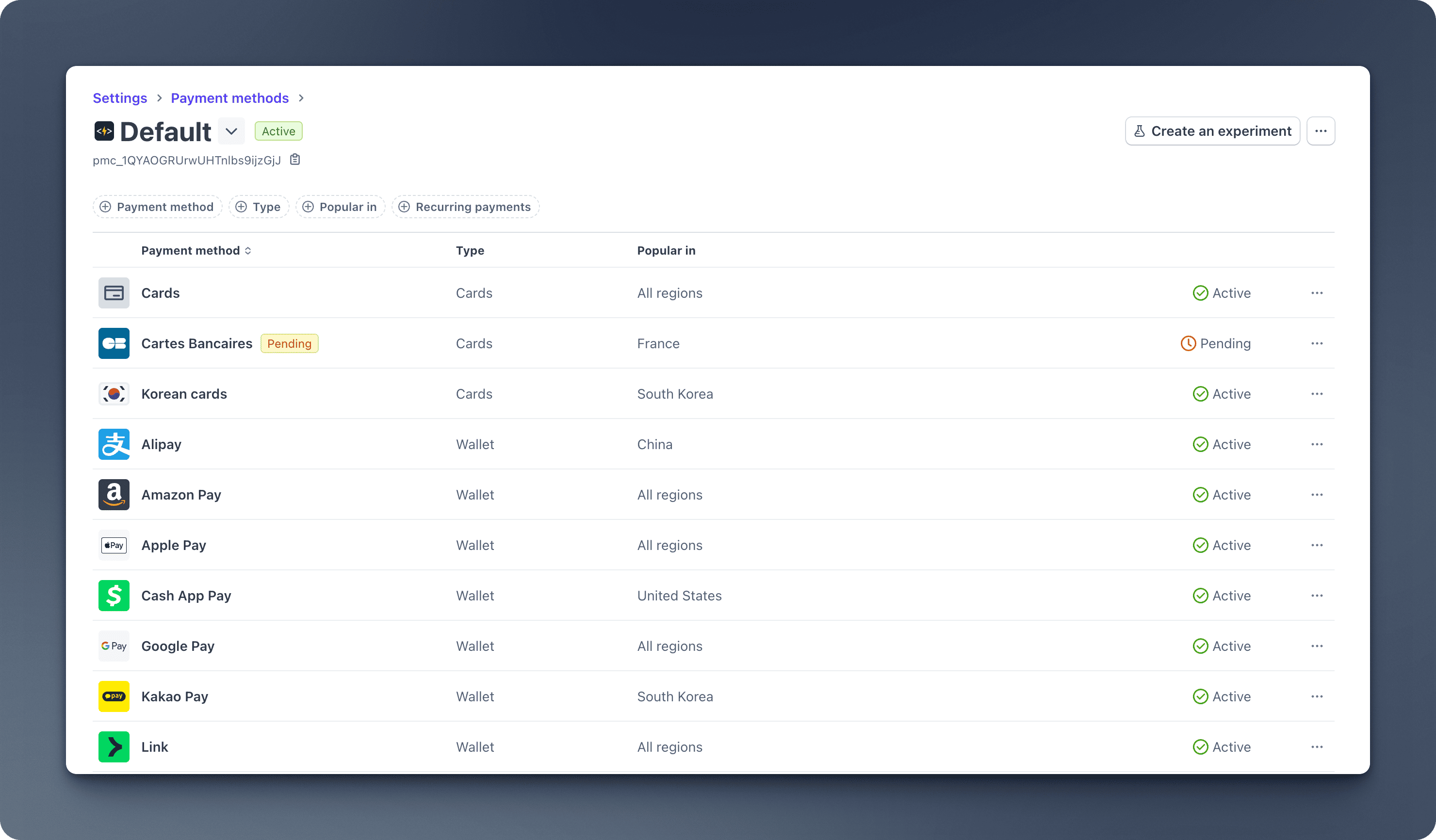 You can activate WeChatPay and Alipay in the Stripe Dashboard > Settings > Payment methods. You can find more information about WeChat Pay and Alipay in the Stripe documentation.
